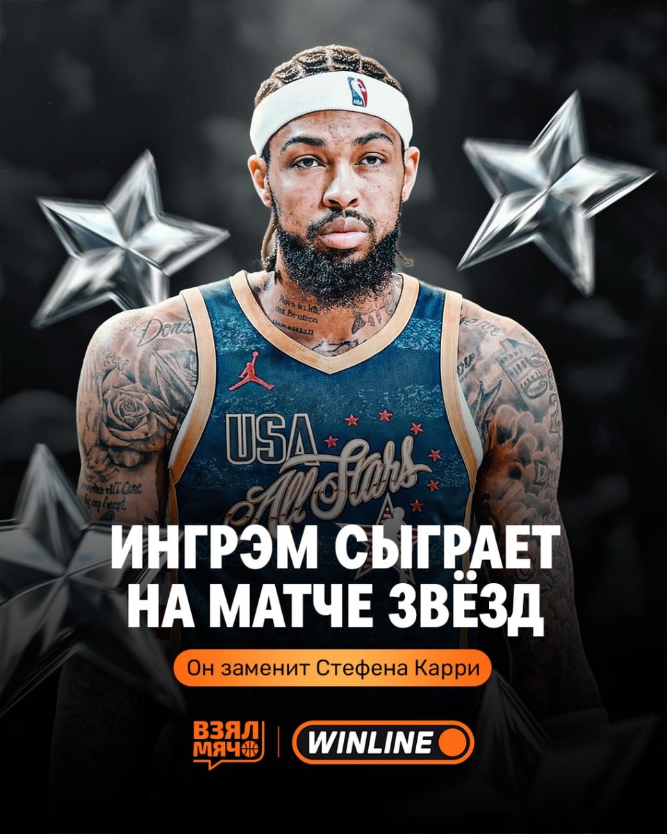 Сегодня стало известно, что Карри не примет участие в Матче звёзд из-за травмы. Вместо него сыграет Брэндон Ингрэм. По сезону в среднем он набирает 22 очка, собирает 5,8 подбора и отдаёт 3,7 передачи. 🏀 ПОДПИШИСЬ — ЗДЕСЬ ЖИВЁТ БАСКЕТБОЛ!