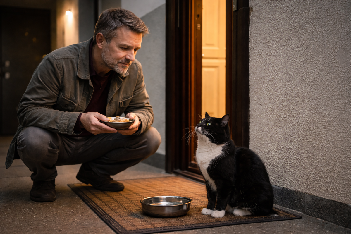 С этого момента произошло тонкое, но очень важное изменение: коврик у двери Сергея Петровича перестал быть нейтральной территорией и превратился в «прихожую с котом».