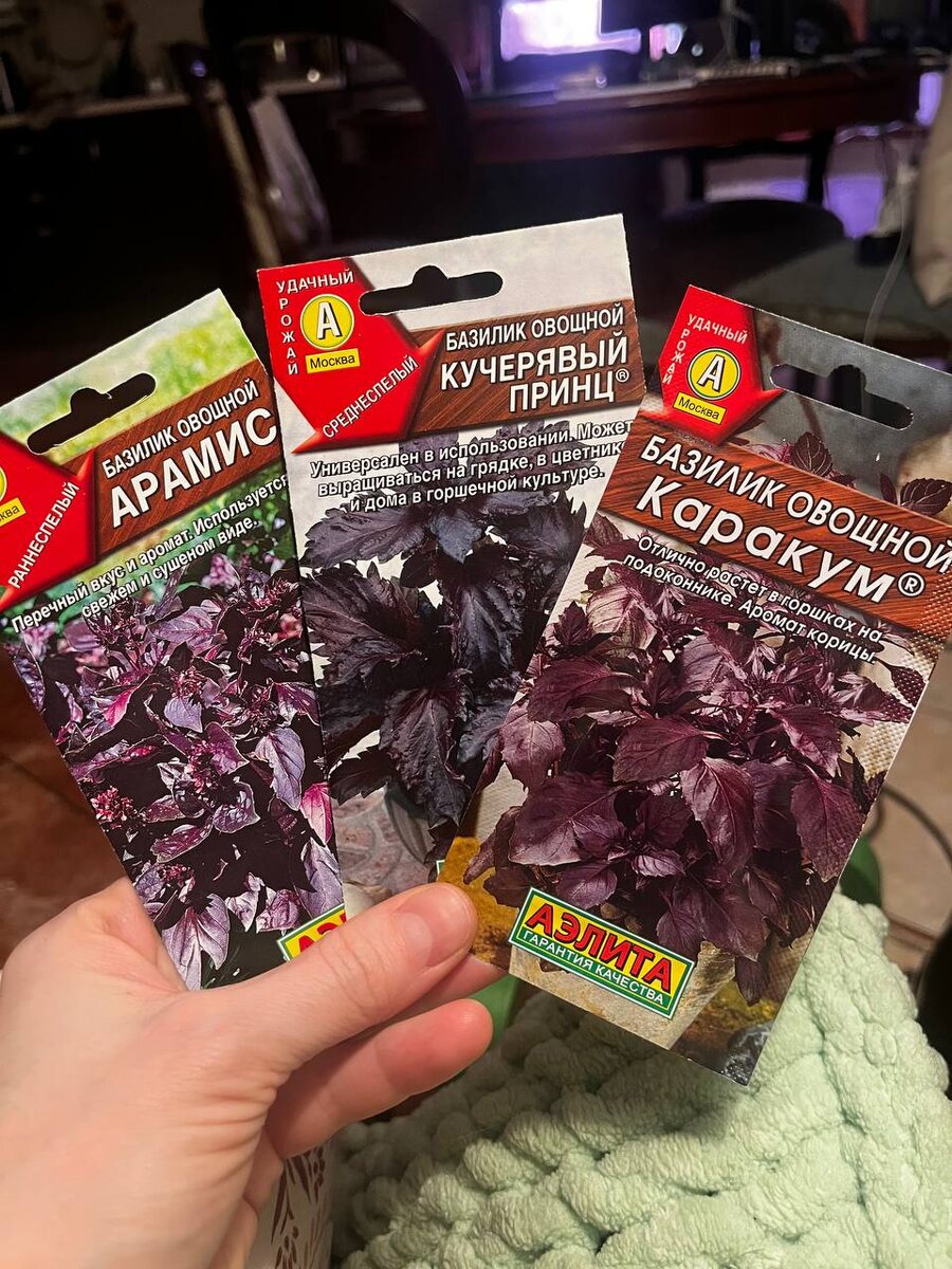 Нашла неожиданно дома новые сорта базилика фиолетового 💜