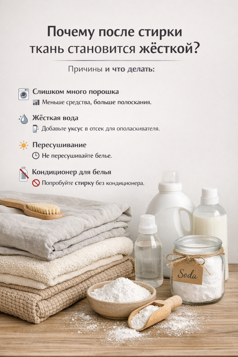 Почему после стирки ткань становится жёсткой — и как это исправить 🧺