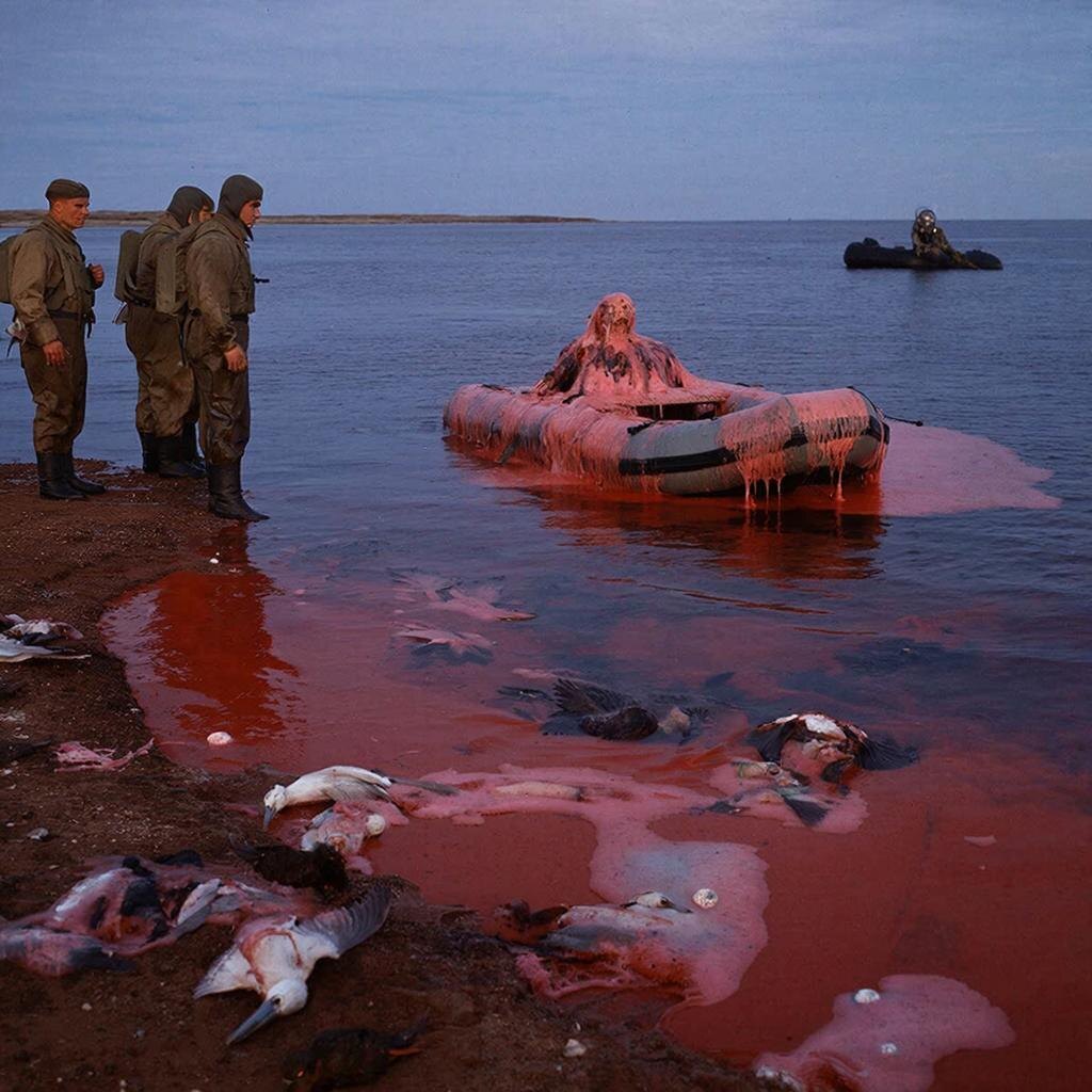 Через две недели пришло первое сообщение с метеостанции на одном из отдалённых островков в заливе. Дежурный метеоролог сообщил о странном явлении: вода вокруг острова приобрела мутный кирпично-красный оттенок, а на берег начала массово выбрасываться мёртвая рыба, морские птицы и даже несколько мелких тюленей. Все трупы были свежими, без признаков разложения, но с теми же розоватыми пятнами на слизистых. Через день связь со станцией прервалась. Воронцов, наконец осознав масштаб угрозы, доложил «наверх». В Москве была объявлена чрезвычайная ситуация. В район залива Меньшикова срочно выдвинулась специальная группа Минобороны и КГБ под кодовым названием «Глубокий След». Её возглавил капитан 1-го ранга Игорь Волков, хмурый и решительный офицер с опытом ликвидации сложных инцидентов. В группу вошли военные биологи, химики-токсикологи, медики и подразделение морской пехоты в химзащите.