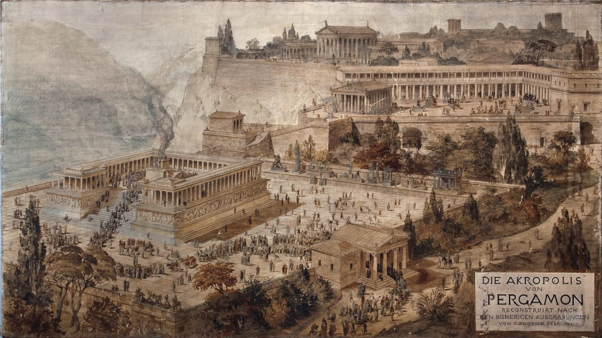 Пергамское царство представляло собой эллинистическое государство в Малой Азии, которое существовало с начала III по конец II века до н. э. Наиболее известной исторической достопримечательностью, связанной с ним, является Пергамский алтарь, который в конце XIX столетия обнаружили немцы и вывезли его фриз в Берлин в специально построенный Пергамский музей. Однако древний Пергам также славился своей библиотекой, которая конкурировала со знаменитой библиотекой в Александрии. Столица царства дала своё название пергаменту, то есть материалу из кожи животных, на котором записывались тексты. По свидетельству историка Плиния Старшего, сама технология была изобретена в рамках соперничества двух великих библиотек, когда Александрия прекратила поставки папируса для свитков в Малую Азию, хотя на самом деле пергамент стал использоваться задолго до возвышения Пергама. В конце II века до н. э. Пергам был присоединён к Римской республике. Примерно сто лет спустя Александрийская библиотека сильно постр