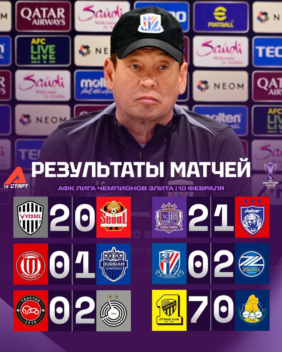 ! Слуцкий и «Шанхай» вылетели из АЛЧ, «Аль-Иттихад» устроил разгромище «Аль-Гарафе», «Сеул» без Лингарда и без победы. А завтра нас ждут новые матчи турнира 🫡 Подписывайся на ТВ СТАРТ в MAX📲