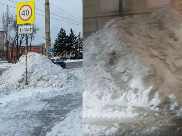 В Ростове люди пожаловались на огромные горы снега, которые спецтехника оставила на обочинах и тротуарах
