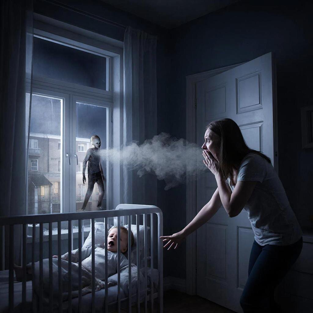 На записи видно, как я укладываю Лёшу и ухожу. Проходит час. В комнате темно. И вдруг… в кадре, на подоконнике, материализуется фигура. Тот самый «Лёша» из окна напротив. Он не входит через стекло. Он просто появляется из темноты, словно выходя из тени. Он подходит к кроватке и наклоняется над спящим настоящим Лёшей. Они лежат рядом — один спящий, другой бодрствующий, как идеальные копии. Двойник кладёт руку на лоб настоящего ребёнка. И начинает… вдыхать. Изо рта и носа моего сына тянется тонкая, серебристая дымка, которую двойник вбирает в себя. Процесс длится несколько минут. Потом двойник исчезает так же, как появился. А мой Лёша ворочается и начинает тихо плакать во сне.