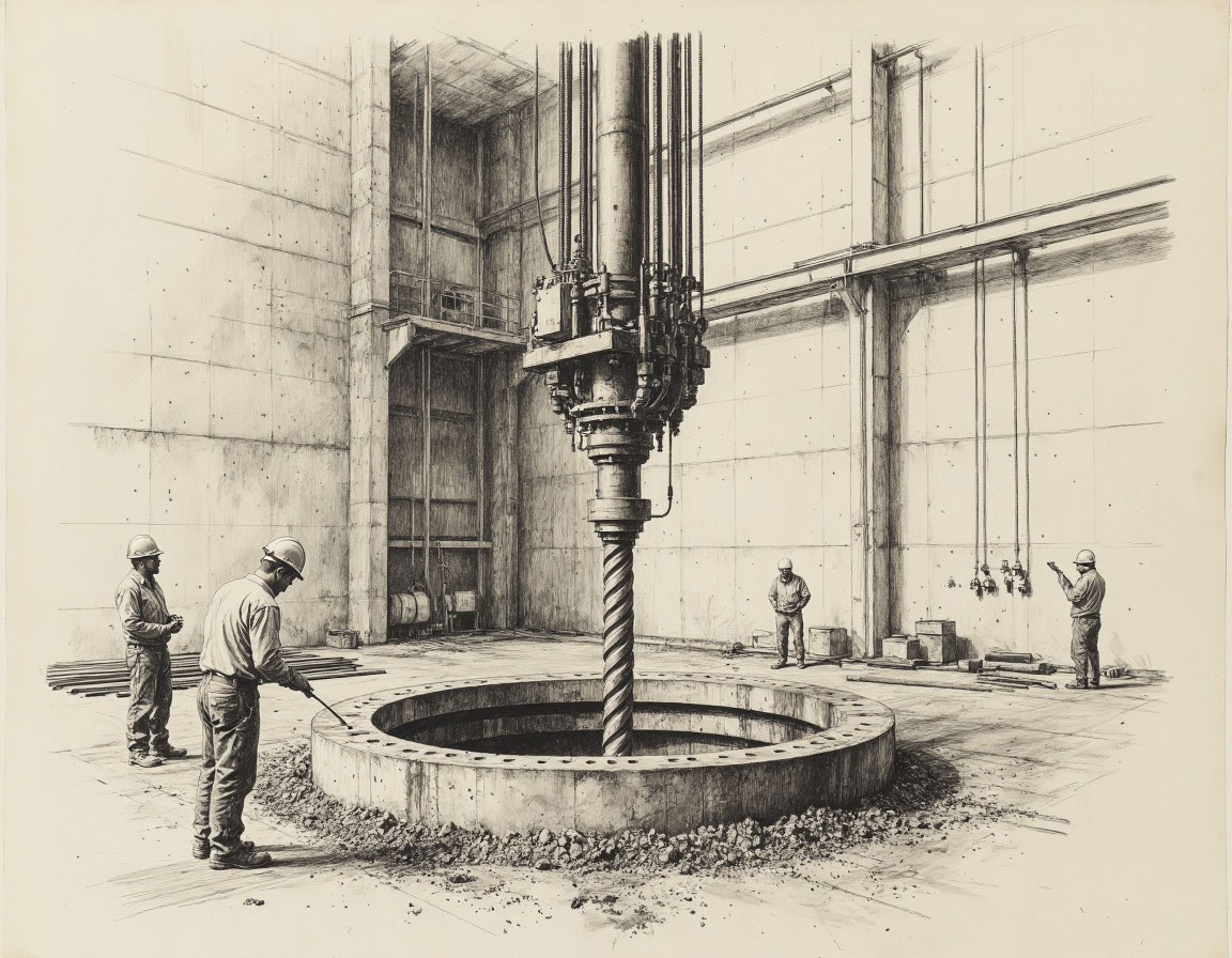 Метод бурения был турбинным: внутри скважины под давлением жидкости вращалась только буровая коронка. Каждый день на само бурение уходило около четырёх часов — остальное время занимали подъём труб и выемка керна. За смену удавалось пройти 7–10 метров породы.