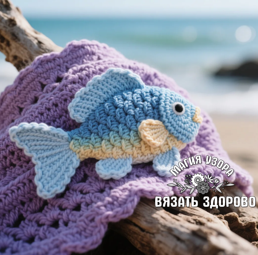 Особенность: при блокировке изделия мокрым способом ракушки "раскрываются" и узор становится особенно выразительным. Рыбы обожают этот волшебный эффект! 🐚