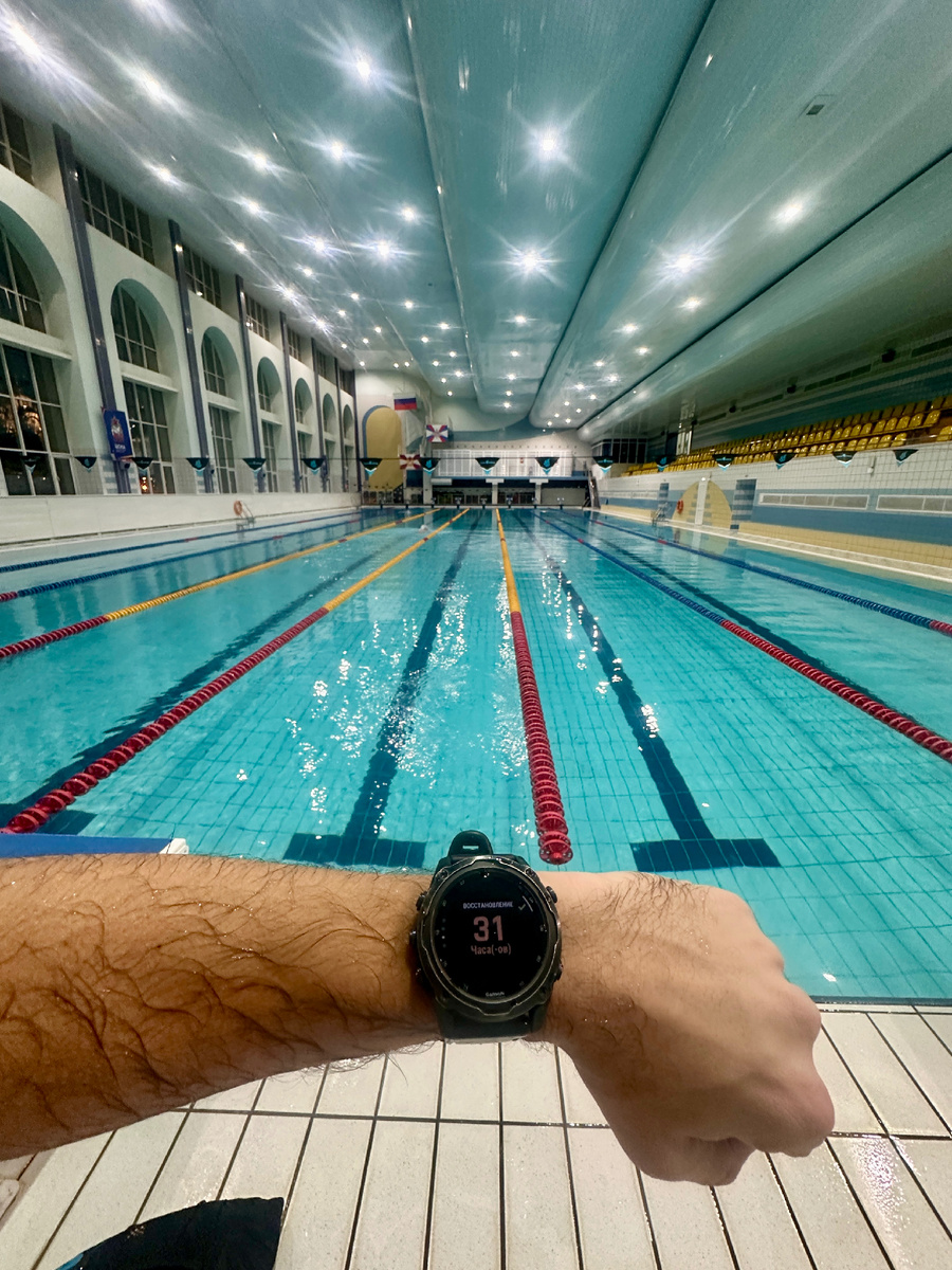 • кроль 46,5 сек - стартанули с другом на скорость. Ток я ноги не подрубал, чтобы пульс не задрать (мне ж еще круг☝🏼)