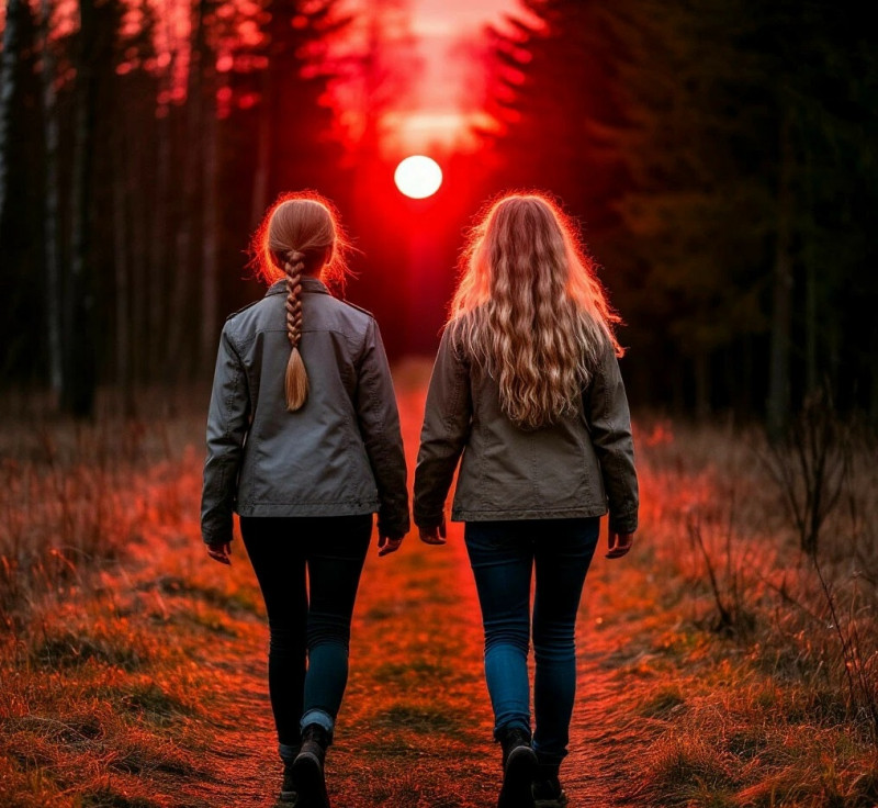 Широкая просека уводила Лиду и Настю навстречу закату. Краснеющее солнце ощупывало сонными лучами их лица и путалось в ресницах, назойливо пробираясь в глаза. Путь предстоял неблизкий.