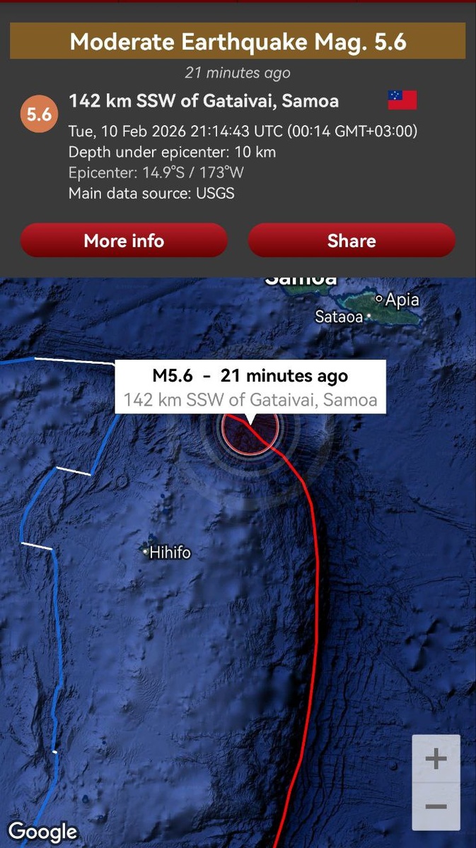 Зона у Самоа также получила своё М5.6. А напрашивалась она на него уже пару недель. Энергия здесь сброшена лишь частично, возможно более сильное продолжение.