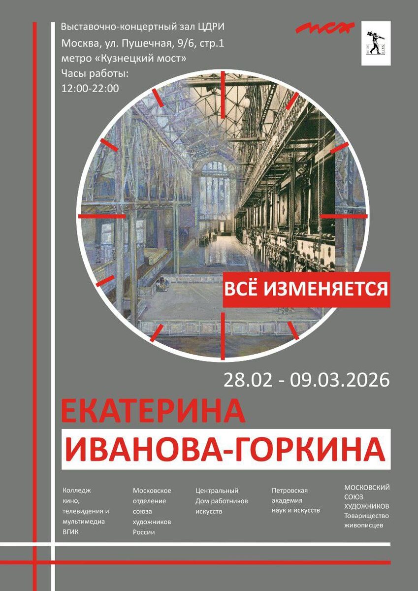 Совсем скоро откроется персональная выставка Екатерины Ивановой-Горкиной под названием: «Всё изменяется». Звучит как обещание чего-то важного и светлого. Это отличный повод провести вечер в окружении искусства. 📍 Где: Выставочно-концертный зал ЦДРИ Москва, ул. Пушечная, д. 9/6, стр. 1 (м. Кузнецкий мост) 🗓 Когда: 28 февраля — 9 марта 2026 г. ⏰ Часы работы: 12:00 – 22:00