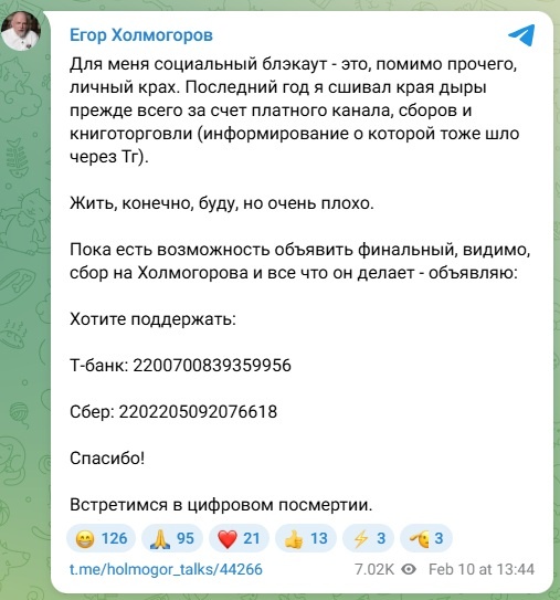 Вот когда эти деятели пыжились и раздували из себя слона, было смешно, а сейчас, когда они просят пожертвования из-за замедления Telegram, как-то уже нет.