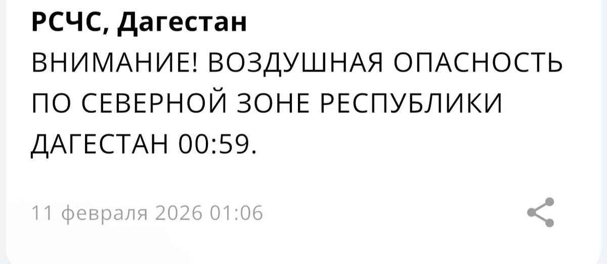 Воздушная опасность по северной зоне Дагестана, — МЧС