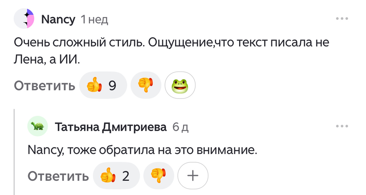 Кто хочет так же проверить мои тексты - берите любой и кидайте в свои нейронки на проверку. А потом отписывайтесь от меня и ищите кого попроще читать.