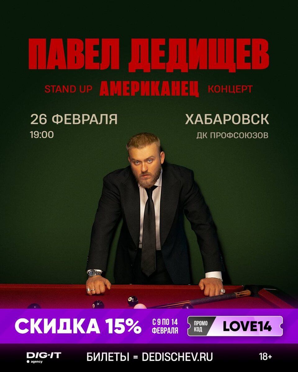 Хабаровск, Павел Дедищев с новой программой "Американец" в твоем городе уже 26 февраля! Не пропусти