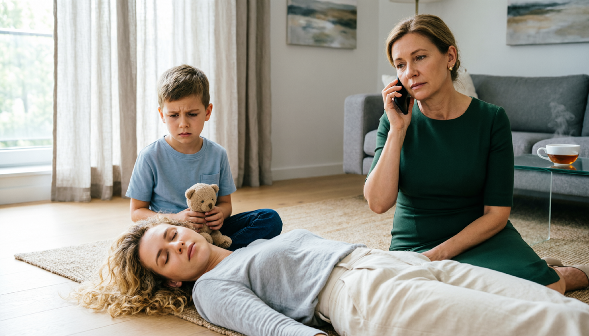 Елена Петровна почувствовала, как земля уходит из-под ног. Она встала, огляделась. В доме витал запах затхлости и лекарств. На журнальном столике — квитанции, просроченные счета, записка от педиатра: «Срочно вызвать врача. Температура у ребёнка держится третий день».