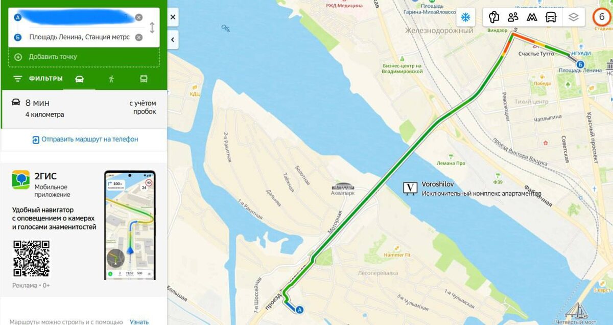 Реальные 8 минут при пробках в 6 баллов