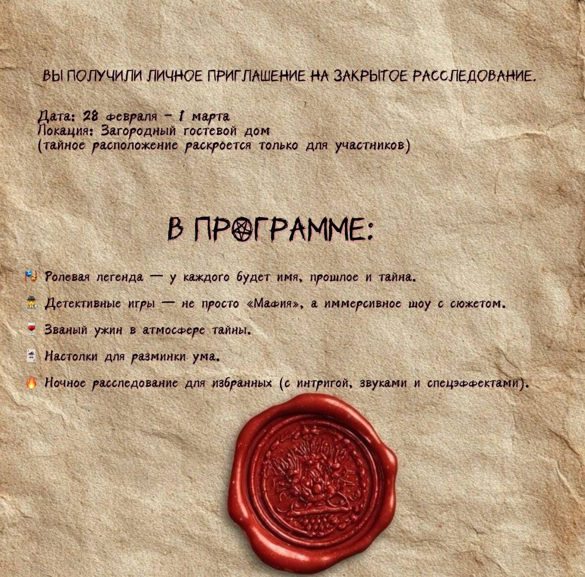 Организаторы арендовали гостевой дом, чтобы устроить тематическую игру по мотивам "Мафии" с полным погружением, ролями, ужином и специальной программой. Есть два формата: дневной (субботний вечер) и с ночёвкой (суббота + воскресенье). 🕐с 28 февраля по 1 марта 🔑для бронирования пишите в личные сообщения @irina_golovchuk #Новости Предложить публикацию:@zabkulisye_bot