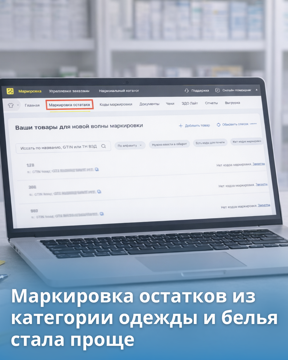 Если в аптеке остались немаркированные товары из категории одежды и белья (например, компрессионный трикотаж, ортопедическое и корректирующее белье, наколенники и налокотники из текстиля, носки и прочее) их можно легко отслеживать в личном кабинете Системы маркировки.