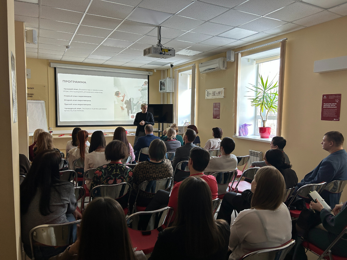 10 февраля в Хабаровске состоялась деловая игра «ПАРТНЁРСТВО», посвящённая развитию переговорных навыков в бизнесе. Участники работали в практическом формате и с первых минут включались в симуляцию реальных переговоров. Игра была построена как модель типичных бизнес-ситуаций, в которых предпринимателям приходится договариваться о распределении ресурсов, долей и ответственности в условиях дефицита времени и противоречивых интересов сторон. Каждое решение влияло не только на финансовый результат, но и на репутацию — так же, как и в реальной жизни. В ходе мероприятия участники пробовали вести переговоры из невыгодной позиции, реагировать на жёсткие требования партнёров, отстаивать свои условия и находить баланс между выгодой и сохранением деловых отношений. Каждый раунд был ограничен по времени и сопровождался разбором решений и обратной связью, что позволяло корректировать стратегию и сразу применять новые подходы в следующей ситуации. «Сегодня предпринимателю важно уметь не только счита