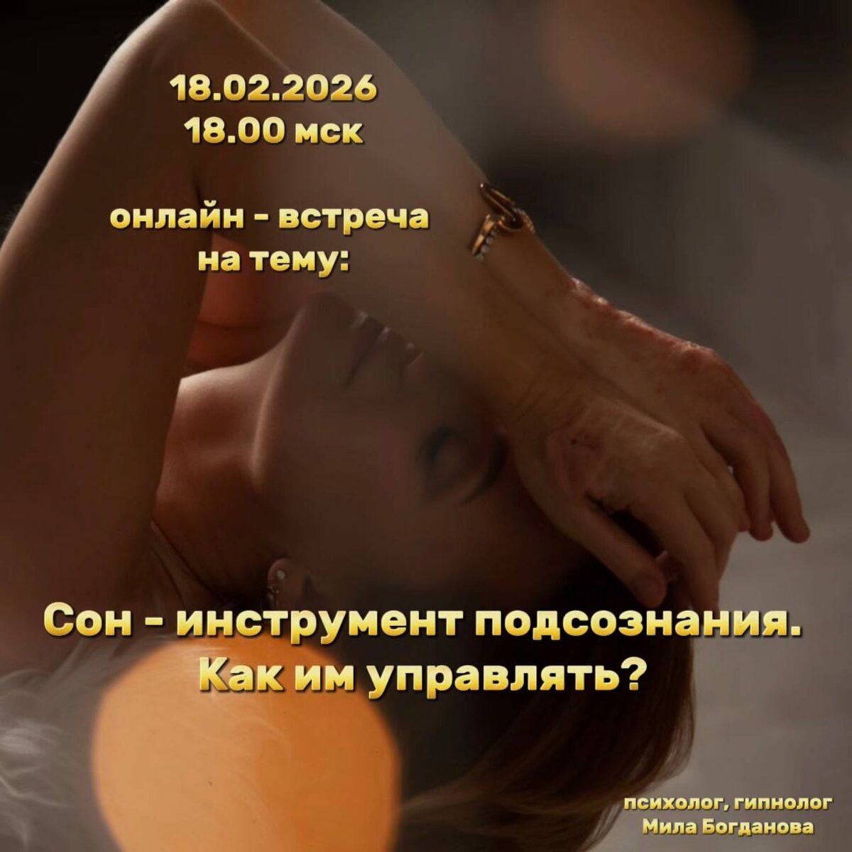 Как им управлять? Во сне наш мозг продолжает активно работать: обрабатывает эмоции, упорядочивает воспоминания, создаёт новые связи между нейронами. Но чаще всего мы наблюдаем этот процесс как пассивные зрители. Осознанное сновидение меняет всё: в момент, когда ты понимаешь, что спишь, ты начинаешь управлять той частью жизни, которая раньше была недоступна. Осознанные сновидения дают возможность находить ответы без посредников, проверять свои интуитивные догадки, и видеть, как мысль действительно формирует реальность. Именно здесь, на границе между нейрофизиологией и подсознанием, начинается то, что можно назвать магией. ПРИГЛАШАЮ НА ОНЛАЙН ВСТРЕЧУ 📍18.02 в 18.00 МСК 📍1,5 - 2 часа живой беседы и гипнопрактики 📍Ведущая — Мила Богданова, психолог, гипнолог, исследователь подсознательных состояний и влияний матрицы на жизнь человека. На встрече мы разберём: ✨ как работает мозг во время сна ✨ что такое осознанное сновидение, внетелесный опыт и сонный паралич ✨ как безопасно вх