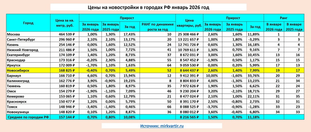 ΠΠΎ Π΄Π°Π½Π½ΡΠΌ ΠΌΠΎΠ½ΠΈΡΠΎΡΠΈΠ½Π³Π° ΠΏΠΎΡΡΠ°Π»Π° Β«ΠΠΈΡ ΠΊΠ²Π°ΡΡΠΈΡΒ», ΡΠ΅Π½Π° ΠΊΠ²Π°Π΄ΡΠ°ΡΠ½ΠΎΠ³ΠΎ ΠΌΠ΅ΡΡΠ° Π² Π½ΠΎΠ²ΠΎΡΡΡΠΎΠΉΠΊΠ°Ρ