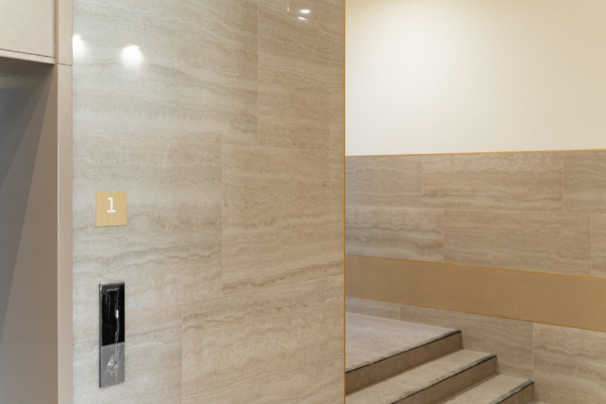 Что они должны жить в комфорте, конечно. И он начнётся далеко за пределами входной двери в квартиру. В готовом доме на Интернациональной, 200 всего четыре подъезда. Каждый с индивидуальной планировкой и дизайном. А дизайн для нас — это в первую очередь про удобство. - Обходить дом под дождём или с тяжёлыми сумками — вроде, мелочь, а неприятно. Поэтому мы сделали входы сквозными. Заходите с улицы или двора — и сразу в тёплый холл. - У участка непростой рельеф. Но нам удалось сделать все входы на уровне земли. Внутри холла мы можем использовать небольшие лестницы, но лишь со стороны одного из входов. То есть, до лифта можно будет добраться без преодоления ступенек в любом подъезде. - На языке строителей холл — это МОП — место общественного пользования. Чтобы пользоваться им можно было с удовольствием и не один год, в отделке мы использовали керамогранит. Глянцевая поверхность визуально расширяет пространство, природный рисунок — отсылка к ониксу, а износостойкость материала помогает сохр