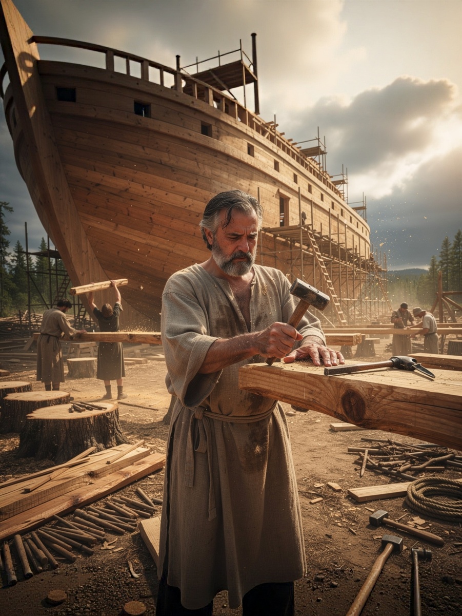 С первых строк нас окутывает атмосфера меланхолии: "Дождь за окном, и в сердце грусть". Но эта грусть не затягивает, она лишь служит отправной точкой для мощного посыла. Автор мастерски проводит параллель с библейской историей о Ное, который, столкнувшись с всемирным потопом, не стал оплакивать судьбу, а взялся за дело. "Он не стонал, не падал и не ждал чудес, Чтоб мир спасти, срубил лес." – эти строки звучат как удар молота, пробуждающий от спячки.