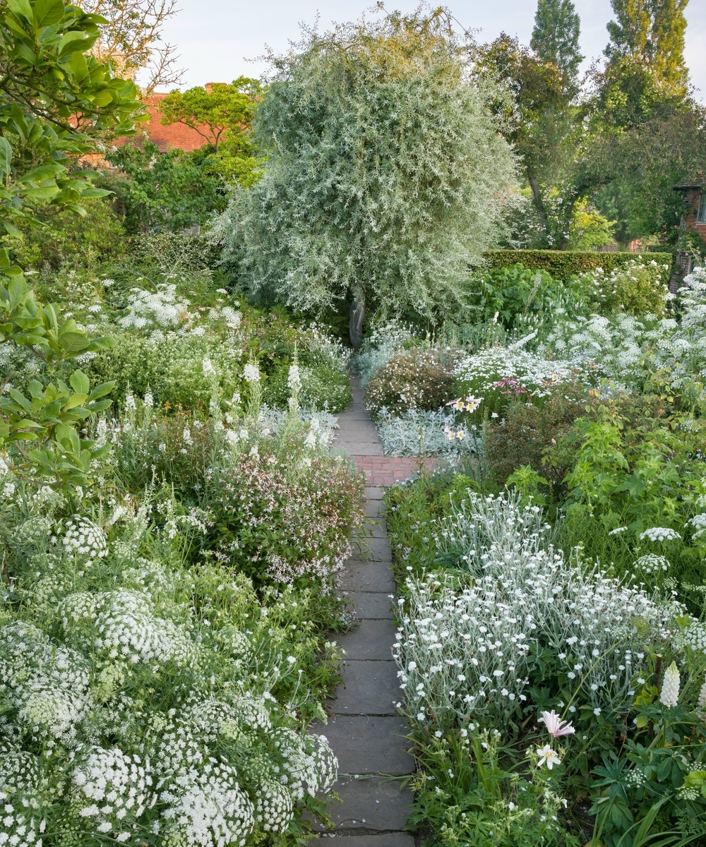 Белый сад непрерывного цветения — это элегантные ландшафтные композиции, где преобладают растения с белыми цветами и светлой листвой с весны до осени. Они создают атмосферу чистоты, свежести и умиротворения, особенно эффектны в вечернее время, когда белый цвет "светится" в сумерках. Для непрерывности цветения высаживайте растения с разным периодом пика декоративности. Подбор растений по сезонам: Весна - крокусы, нарциссы, тюльпаны, рододендроны, спирея серая Лето - пионы, розы, лаванда, котовники, лилии, флоксы, астильбы, клематисы, нивяник, сирень, калина бульденеж, чубушник (жасмин) Осень - астры, хризантемы, гортензия Также можно разбавить белые композиции растениями с вариегатной или серебристой листвой / хвоей: дерен, бруннера, цинерария, полынь, ясколка, стахис, злаки, хосты, можжевельники, пихты. А придать контраста с темными хвойниками. Место посадки: полутень или рассеянный свет идеальны для сохранения яркости белых цветов. Избегайте плотной тени — цветение может быть слабым