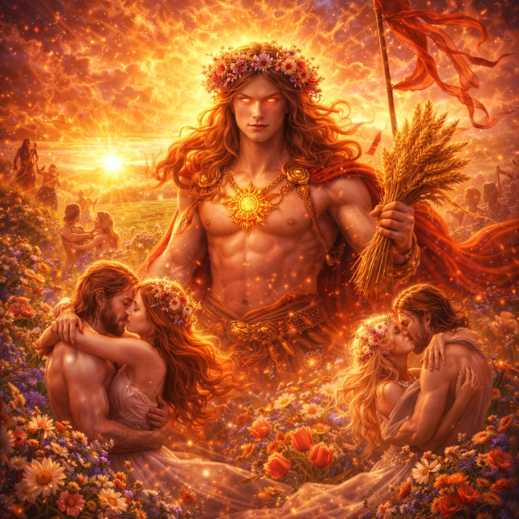 Ярило связан не просто с любовью или теплом. Он связан с тем состоянием, когда энергия жизни достигает максимума. Когда всё начинает расти одновременно. Когда кровь становится горячее. Когда земля больше не может оставаться неподвижной.