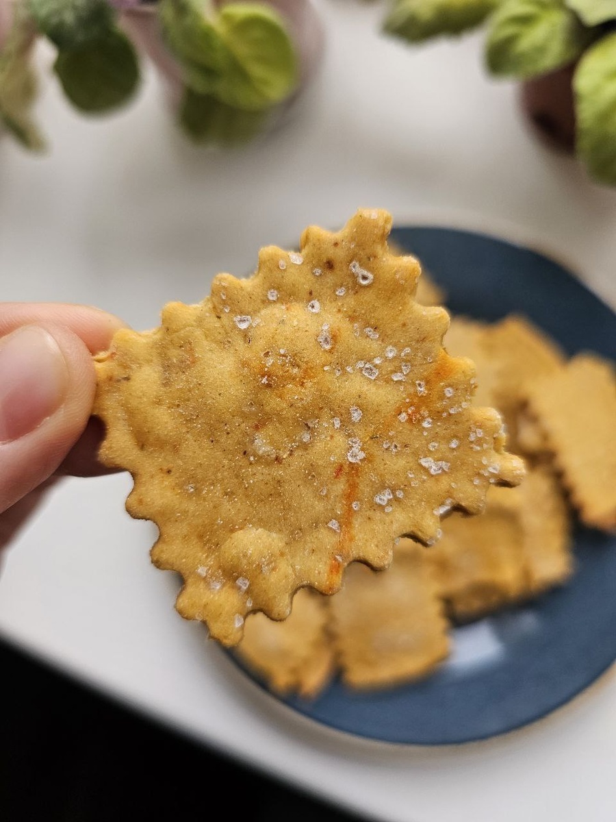 - https://t.me/persyava/283 Только внесла пару корректировок. Состав такой: Нутовая мука 130 грамм Мука бурого риса 100 грамм Вода 100 мл Масло растительное 1 ст.л. Соль, специи, зелень по вкусу (паприка, хмели-сунели) Раскатывать тесто (консистенция на видео) на силиконовом коврике (или силиконизированном пергаменте). Сразу надрезать, чтоб удобно было потом ломать, посыпать и придавить крупную соль сверху для вкуса 👩🍳 В этом посте есть большое видео, которое не загрузилось в Дзен. Откройте оригинал поста в телеграме, чтобы его посмотреть