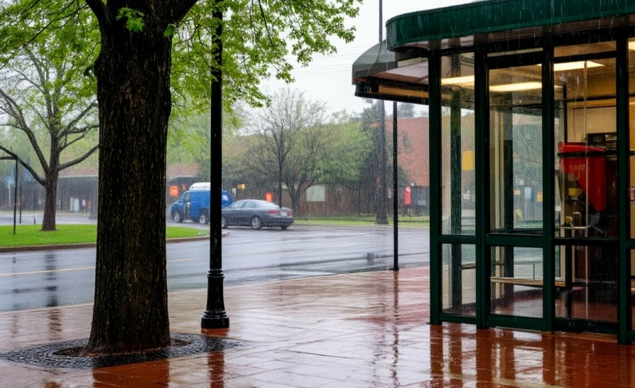 Отдельных стуков уже почти не было слышно — тяжёлые капли сливались в сплошные водяные нити, били по ней так, будто она стояла под гигантским душем. Агата вертела головой, прикидывая, где можно переждать: сама она не сахарная, не растает, а вот продукты промокнуть не должны. Единственным укрытием поблизости оказалась старая автобусная остановка — крыша и одна стенка, не тепло, но от прямых потоков воды спасёт.