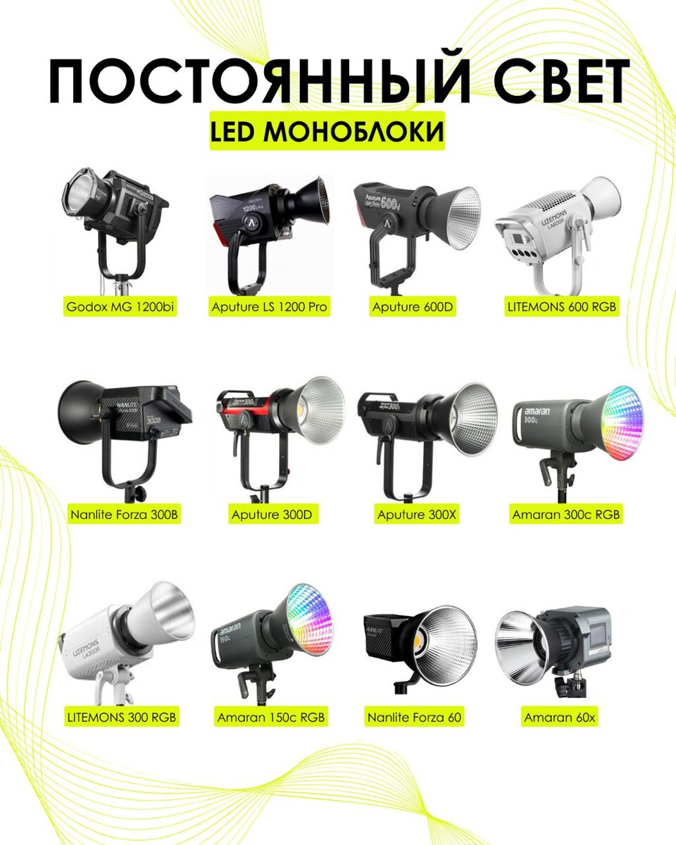 Разбираем популярные LED-моноблоки, которые чаще всего используют в съемках. Делим по типам и сразу объясняем, чем они отличаются и для чего подходят. 🔥 МОНОХРОМНЫЕ (DAYLIGHT, 5600K) Только холодный дневной свет. Максимальная мощность и стабильность. Модели: • Aputure LS 1200 Pro • Aputure 600D • Aputure 300D • Nanlite Forza 60 Особенности: • Самая высокая светоотдача • Отличная цветопередача (CRI/TLCI) • Идеальны как ключевой свет • Требуют гелей, если нужен цвет 🌗 БИКОЛОРНЫЕ (BI-COLOR.) Регулируемая температура света от тёплого до холодного. Модели: • Godox MG 1200Bi • Nanlite Forza 300B • Aputure 300X • Amaran 60x Особенности: • Можно быстро подстроиться под локацию • Удобно смешивать с естественным светом RGB ИСТОЧНИКИ Полный контроль цвета, эффектный свет и атмосфера. Модели: • Litemons 600 RGB • Amaran 300C RGB • Litemons 300 RGB • Amaran 150C RGB Особенности: • Любой цвет + эффекты • Также имеют биколорный режим • Максимум визуала без гелей ⚡ СУПЕРМОЩНЫЕ ФЛАГМАНЫ Для больш