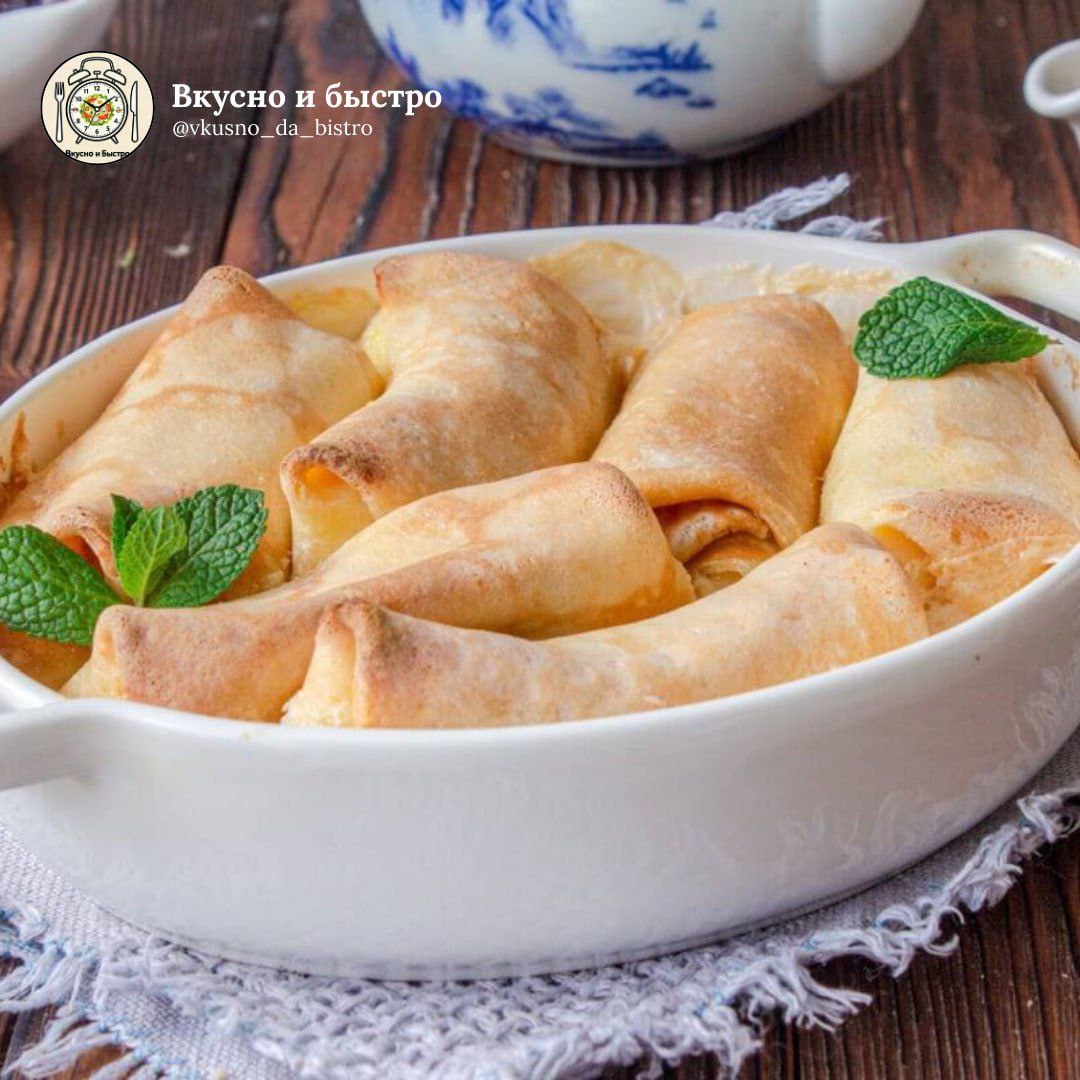 #десерт #40мин 🕒 Время приготовления: ~40 минут Порции: 3–4 Сложность: средняя 🧾 Ингредиенты: Для блинов: 🟠Яйцо — 1 шт 🟠Молоко — 500 мл 🟠Мука — 1 стакан 🟠Соль — щепотка 🟠Сахар — 2 ст. л. 🟠Растительное масло — 1 ст. л. Для начинки: 🟠Творог — 170 г 🟠Сахар — 2 ст. л. 🟠Яйцо — 1 шт 🟠Мак — ½ стакана (предварительно замочить) Для глазури: 🟠Сливочное масло — 20 г 🟠Сахар — 1 ч. л. 🍴Приготовление: 1. В миске взбейте яйцо с солью и сахаром, влейте стакан тёплого молока. 2. Просейте муку и замесите густоватое тесто (чуть гуще, чем на блины), затем влейте оставшееся молоко и добавьте масло. Перемешайте и испеките тонкие блины. 3. Для начинки взбейте блендером творог, яйцо и сахар. Добавьте замоченный мак и перемешайте. 4. На каждый блин выложите начинку, сверните рулетиками и выложите в форму. Смажьте растопленным сливочным маслом и посыпьте сахаром. 5. Запекайте при 220 °C 15 минут до лёгкой румяности. Вкусно и Быстро | Мы в Мах 📲