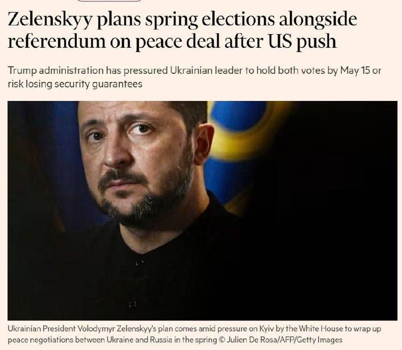 ⚡️24 февраля нарк Зеленский объявит о референдуме и президентских выборах, которые должны состояться до 15 мая, — FT