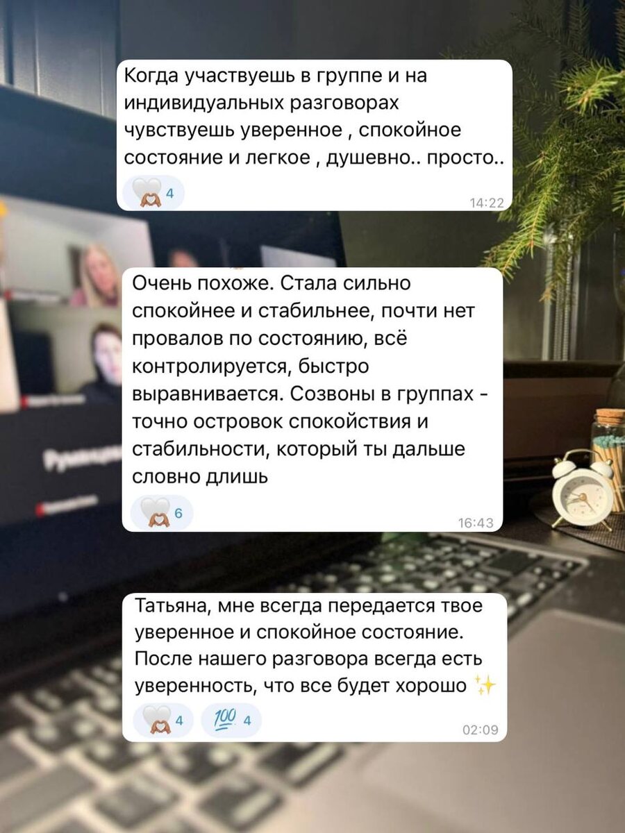 » Недавно рассказывала в этом посте про работу с состоянием во время сеанса психотерапии. После того текста я получила много откликов от участниц групп. Они писали, что и после наших логотерапевтических встреч появляется лёгкость, ясность, внутреннее выравнивание. ❤️ Как будто что-то встало на свои места. То же самое я слышу и после индивидуальных консультаций. Благодарю каждого за тёплый отклик! 🙏 Ваши слова — ещё одно подтверждение, что мы работаем не только со словами и смыслами, мы работаем с тем, в каком состоянии человек живёт свою жизнь. Нужно просто дать себе возможность побыть в устойчивом, спокойном пространстве и из него уже начинать идти дальше. Если вы хотите обрести это состояние внутреннего равновесия и опоры, я всегда жду вас на наших разговорах: ❤️ индивидуальные консультации ❤️ логотерапевтические встречи (с 14 февраля разбираем книгу Элизабет Лукас «Источники осознанной жизни. Преврати проблемы в ресурс») 🤩 Каждому участнику группы я дарю 30 минут индиви