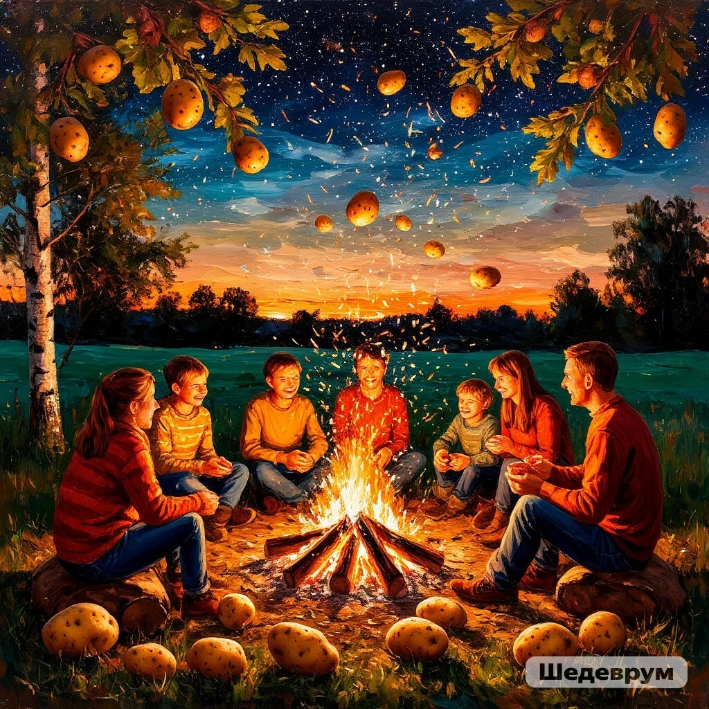 В детстве магия была проста и священна: найти в остывающей и прогоревшей золе плотные, обугленные снаружи комочки. Стучать по ним ладонью, очищая до золотистой, пропахшей дымом мякоти запечённой картошки. Соль из кулька — и это был пир. Шашлык пришёл позже, как взрослый, более сложный ритуал, но корни его — те же: терпение, внимание к огню и простота.