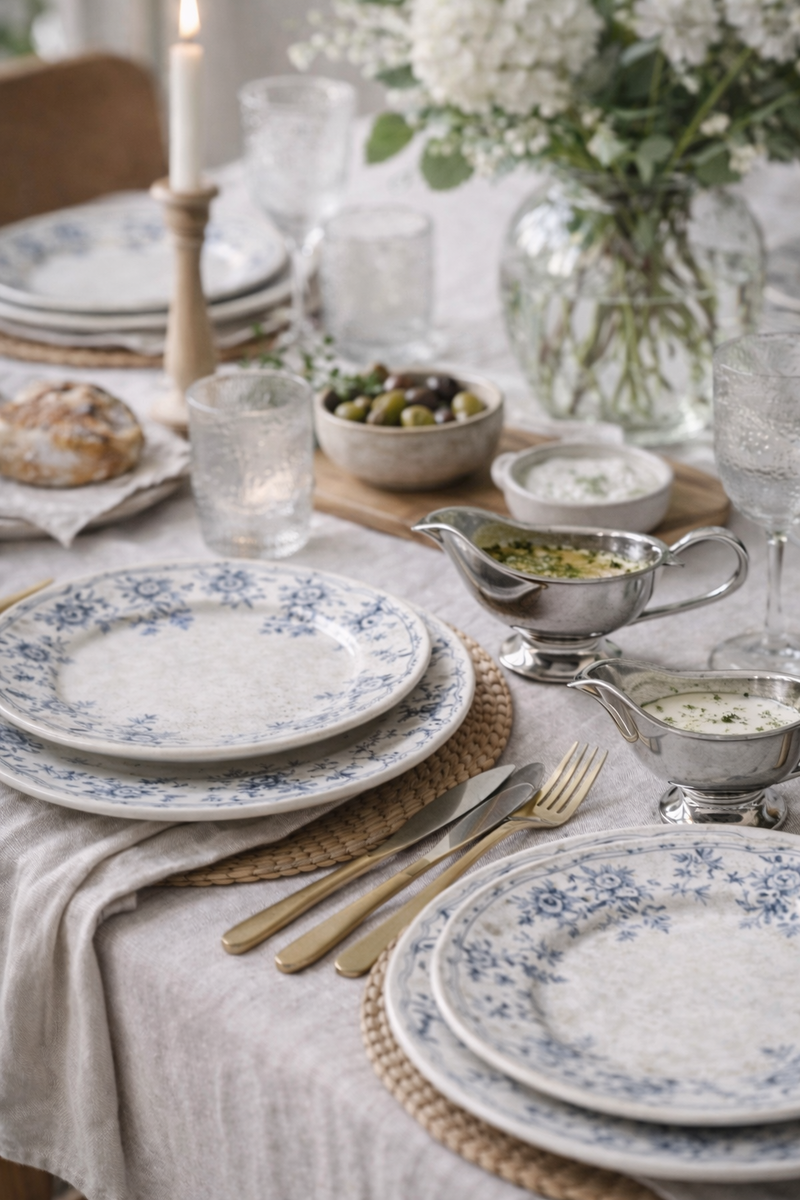 Основа сервировочного ансамбля - тарелки базовых оттенков, дополненные акцентами в оттенках терракоты, изумруда и шоколада.