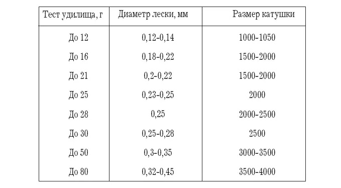 У фирменных удилищ каждой определенной модели соответствует своя конкретная катушка. Ее вес, тип, размер напрямую зависят от класса, строя и веса удилища. Часто это табличное значение, которое можно найти в каталогах интересующих фирм. Только удилища, оснащенные правильно выбранной катушкой, способны принести удовольствие от ловли и обеспечить дальность заброса и надежность при выва-живании крупной рыбы. Так, например, при ловле сверхлегкими моделями спиннингов (ultralight), используются катушки размером 1000–1050. Размер 1000 более подходит для ловли спиннингами длиной до 2 метров, 1050 – для спиннингов длиной более 2,5 метров.