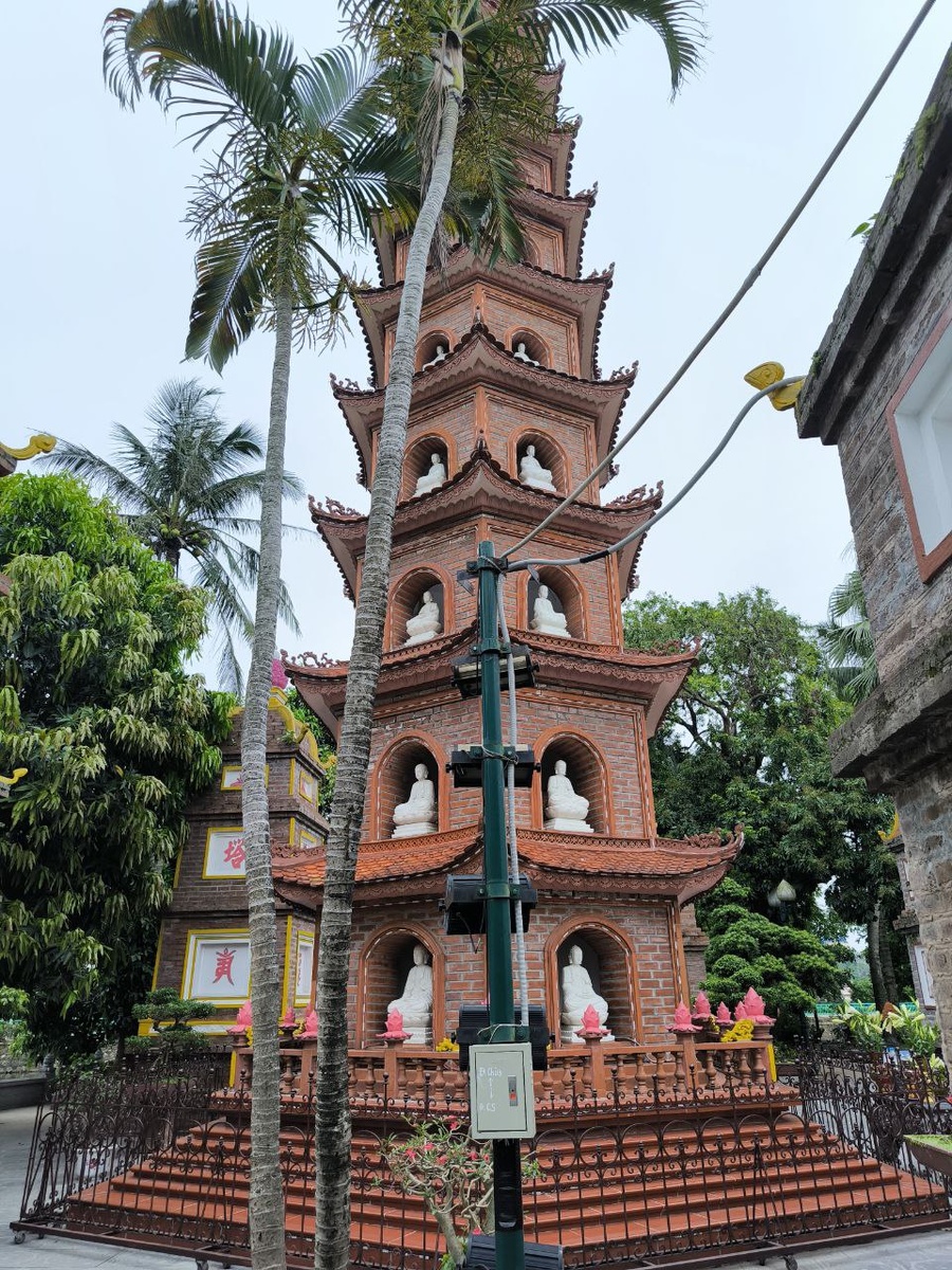 ! В этот раз в Ханое мы посетили-таки два древних храма, один из которых является визитной карточкой Ханоя. Так, пагода Tran Quoc со своей высокой многоэтажной башней красуется на большинстве Ханойских фото и открыток. И неудивительно - это старейшая пагода Ханоя, которая была построена ещё в VI веке. Правда, выглядит она не такой древней - скорее всего, из-за капитального ремонта в XIX веке. Пагода расположена на берегу крупнейшего в Ханое озера и окружена цветущими лотосами и красивыми садами 🪷. Главное здание - высокая башня из 15 этажей, на каждом из которых расположена статуя Будды. Пагода Quanh Thanh нам понравилась больше - она построена в XI веке и украшена изысканными деревянными панелями с резьбой ✨. Прямо над входом можно увидеть объемный скульптурный рельеф в форме дворца с драконами, которые его держат, и бодхисаттвами. Очень похожее украшение запомнилось мне в Куала-Лумпуре в храме времён опиумных войн Sin Sze Si. Столбы из красного дерева покрыты тонкой золотой лаки