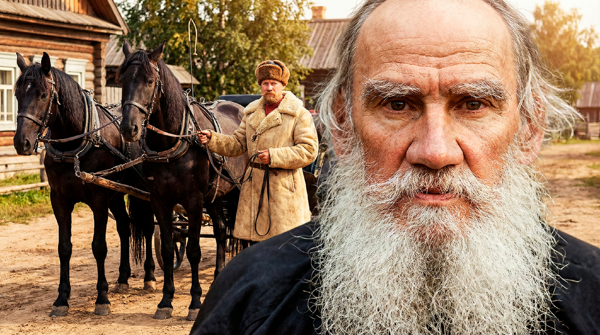 Этого человека звали Тимофей Базыкин, и он работал кучером у сыновей Толстого, на которых был так похож. Братья ехали в экипаже, а брат на козлах.