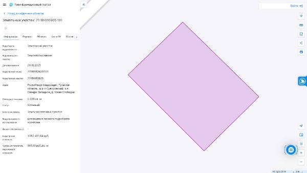 Название: Право заключения договора аренды земельного участка из земель населенных пунктов с кадастровым номером 71:18:010605:191, площадь