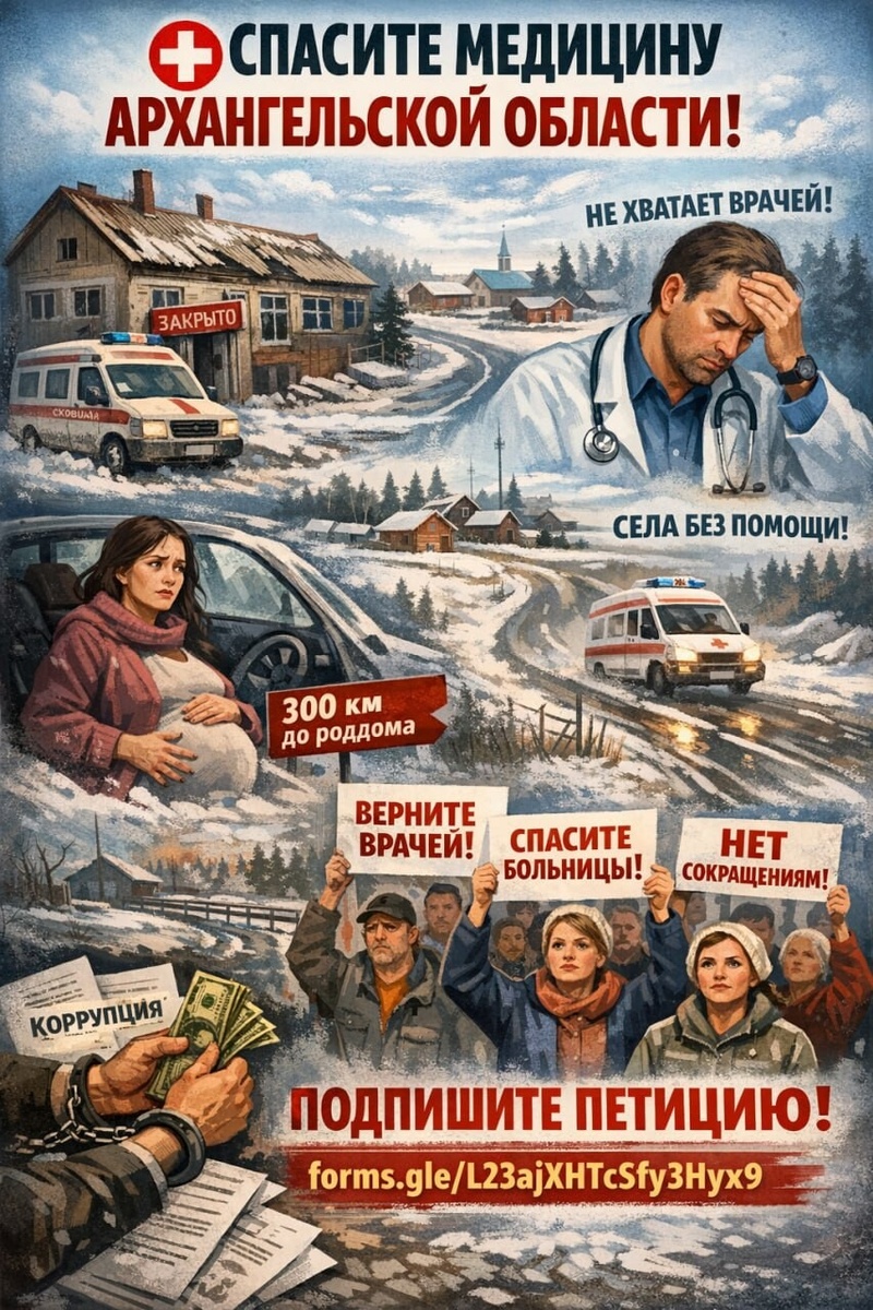 Ситуация в здравоохранении Архангельской области на начало 2026 года остается критической. Основные проблемы связаны с кадровым голодом и малой доступностью медицинской помощи, особенно в сельской местности. Острый дефицит кадров - это чуть ли не ключевая проблема региона. На 2025 год нехватка составляла минимум 243 врача и 172 специалиста среднего звена. Врачи увольняются из-за низких доплат за совмещение и высокой нагрузки. - Жители окраин Архангельска (например, района поликлиники №3) сообщали об угрозе закрытия медучреждений из-за массового увольнения персонала. - В Савинской участковой больнице в конце 2025 года начались массовые сокращения персонала. Жители и сотрудники заявляли об угрозе полной остановки работы стационара и перевода учреждения в формат амбулатории. Оптимизация приводит к тому, что многие отдаленные населенные пункты остаются отрезанными от мед.помощи. - Жители Шалакуши (Няндомский округ) записали видеообращение, называя происходящее в своем поселке «губительной