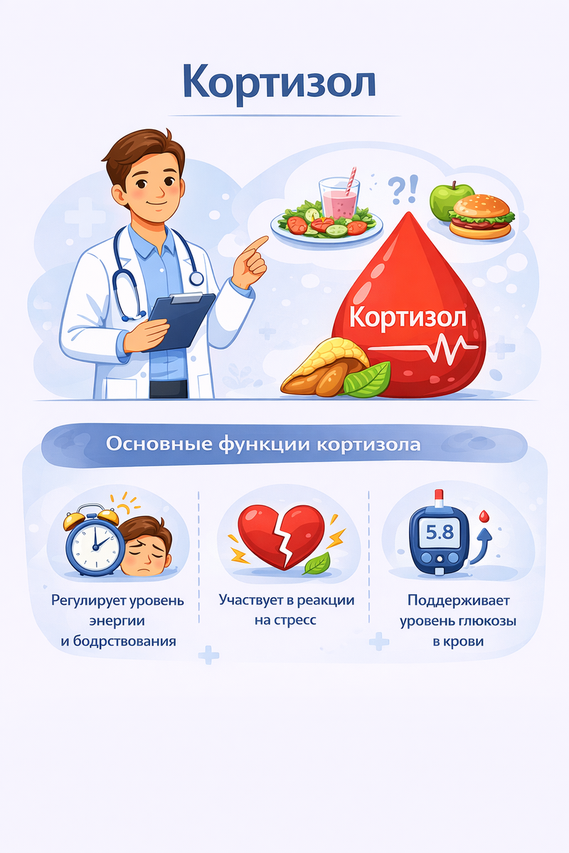 Кортизол часто называют "гормоном стресса" и из-за этого вокруг него сформировался почти негативный образ. Но правда в том, что без кортизола мы бы просто не выжили. Он помогает просыпаться утром, поддерживает давление, регулирует уровень сахара в крови, участвует в обмене веществ и помогает организму реагировать на нагрузку. Проблема начинается не тогда, когда кортизол есть, а когда он постоянно повышен или, наоборот, слишком низкий. Современный ритм жизни - хронический стресс, недосып, перегрузки, информационный шум - делает его нестабильным. И именно эта нестабильность часто лежит в основе ощущения, что организм "работает на пределе". При хронически повышенном кортизоле человек часто чувствует внутреннее напряжение даже без явной причины. Появляется тревожность, поверхностный сон, частые пробуждения ночью, тяга к сладкому и солёному. Вес может увеличиваться, особенно в области живота, несмотря на прежнее питание. Характерный признак - усталость днём и "второе дыхание" вечером. Орган
