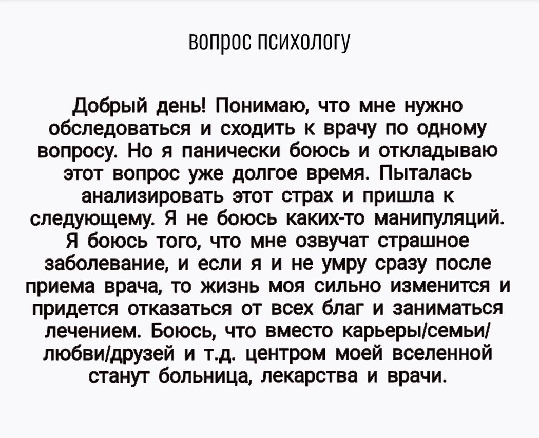 Боюсь сдавать анализы и страшного диагноза. Ответ психолога.