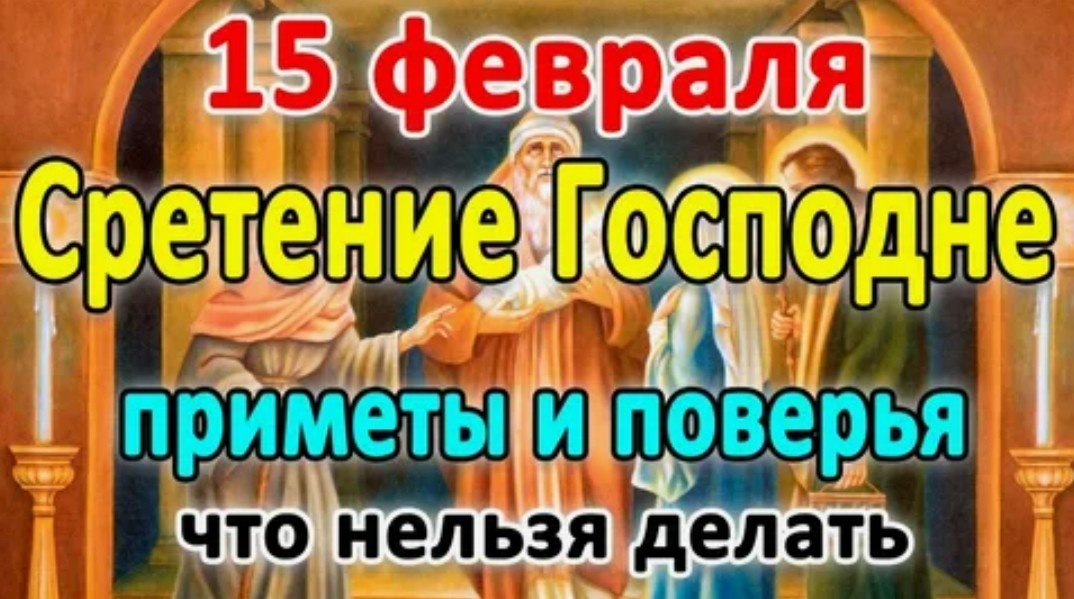Согласно народному календарю, 15 февраля 2026 года приходится праздник Сретения Господня. Его название связано с событием встречи младенца Иисуса со святым Симеоном и пророчицей Анной, поскольку слово «сретение» как раз и переводится как «встреча».