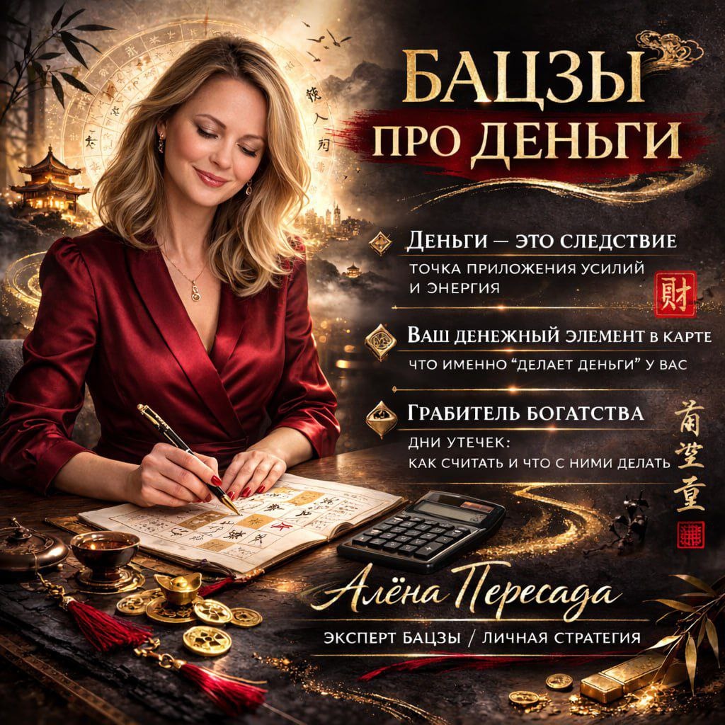 Мы продолжаем серию ОЧНЫХ встреч по БаЦзы. В этот раз будем исследовать тему денег. Проверьте себя, надо ли вам на эту встречу... Сколько пунктов про вас: ✔️ Распыляете внимание на несколько проектов. ✔️ Не знаю правильную точку приложения усилий для финансовой свободы. ✔️ Устали «тащить на воле» вместо драйва и вдохновения от самореализации ✔️ Ощущаете, что «я стараюсь, а деньги утекают». В китайском подходе деньги - это следствие. Следствие того, куда мы направляем энергию и где у нас действительно «правильная точка приложения усилий». На встрече: ✔️ я построю и распечатаю карту БаЦзы каждому участнику и покажу, как в ней ориентироваться; ✔️ разберём ваш денежный элемент: что именно в карте отвечает за деньги и как это активировать; ✔️ поговорим про грабителя богатства: как считать такие дни и как использовать их с умом (в том числе для плановых трат). Приходите. Будет прикладно, ясно и с мыслью: «ага, вот как оно у меня устроено». 📍 Где: Санкт-Петербург, Ресторан «Кэ