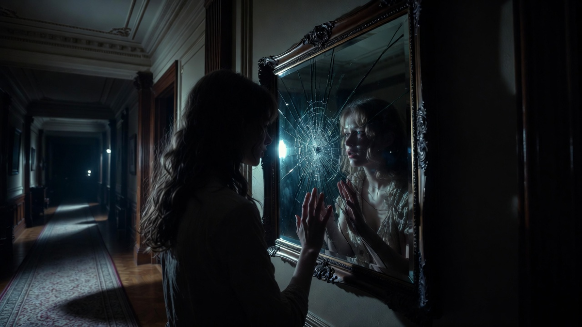 «Ищи в зеркале». Что это могло значить? В доме было множество зеркал — от огромных, в пол, в холле, до маленького в моей ванной. Я подошла к нему. Осмотрела раму, стекло. Ничего. Потом вспомнила — в холле висело старинное венецианское зеркало в тяжёлой, витой раме. Его я почти не замечала, оно было частью интерьера. Я вышла в холл. Было поздно, свет был приглушён. Я подошла к зеркалу. Моё отражение выглядело бледным, испуганным.