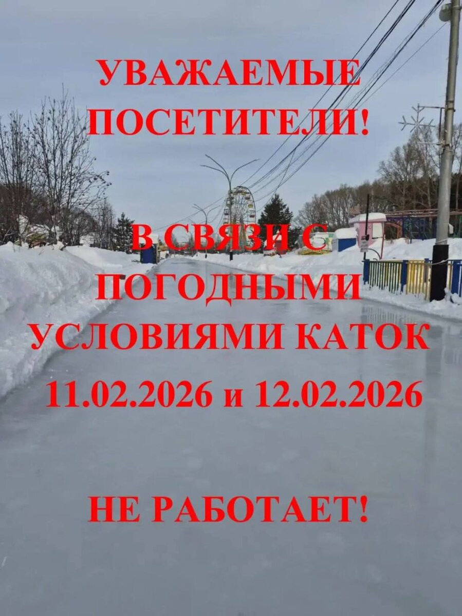 Каток на территории СРЦ Солнечный 11 и 12 февраля не работает.