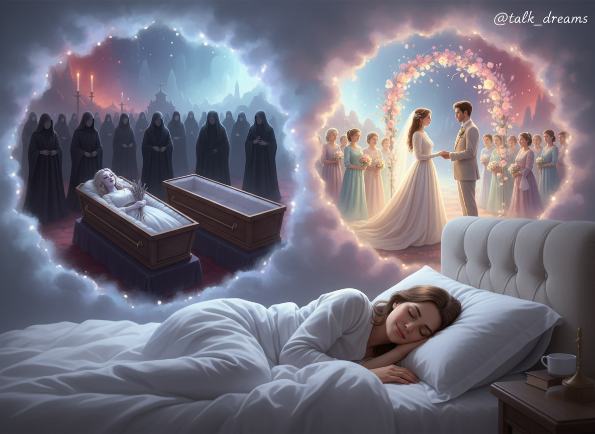😴 К чему снится похороны и свадьба в один день? Анастасия описывает свой сон так: Приснились похороны давно умершего человека и свадьба в тот же день. Когда хоронили этого человека, оказалось, что гроба два и во втором гробу лежит ещё одна женщина, которая не совсем мертвая. На этих похоронах было много покойников. 🤔 Что же значит этот сон? Кстати, вы тоже можете прислать свой сон для трактования нашему боту в телеграмм — https://t.me/ReceiverDream_bot В данном сне есть несколько ключевых символов. ⚰️ Похороны и покойники: Похороны во снах символизируют завершение какого-то этапа в жизни или отпускание прошлого. Такое видение может означать, что что-то умерло или заканчивается в вашей жизни, или необходимо отпустить старые боли или воспоминания. ☦️ Гробы и не совсем мертвая женщина: Наличие двух гробов и не совсем мертвой женщины символизирует двойственность в процессе прощания с прошлым и трудности в этом процессе. Возможно, вы что-то пытаетесь похоронить, но это продолжает давать о